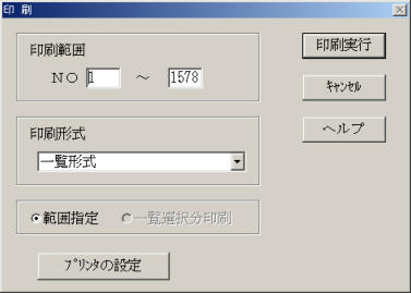 該当データから指定した範囲の各種リストを印刷します。